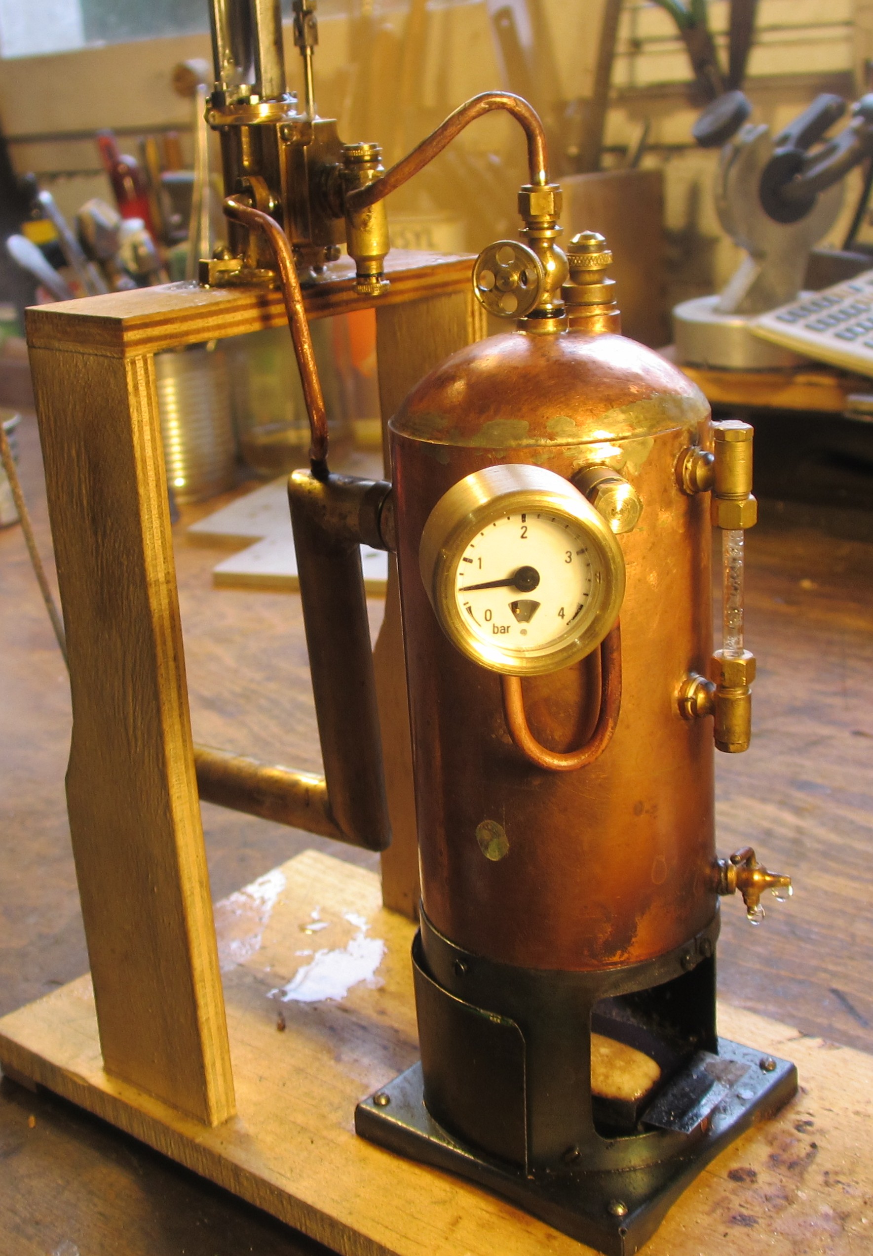 Il y a quand même des dimensions limites, j'ai fait des niveaux d'eau pour tube de verre 3 mm seulement pour l'aspect, il est bien évident que la capillarité fausse toutes les mesures dans les cas ou l'eau veux bien entrer dedans ! avec un verre de 4 mm, on commence à avoir une idée de l'eau à l'intérieur, mais ils paraissent énorme pour mes petites locos ! et à 8mm c'est un instrument de mesure, qq coups de pompe sont visibles...
