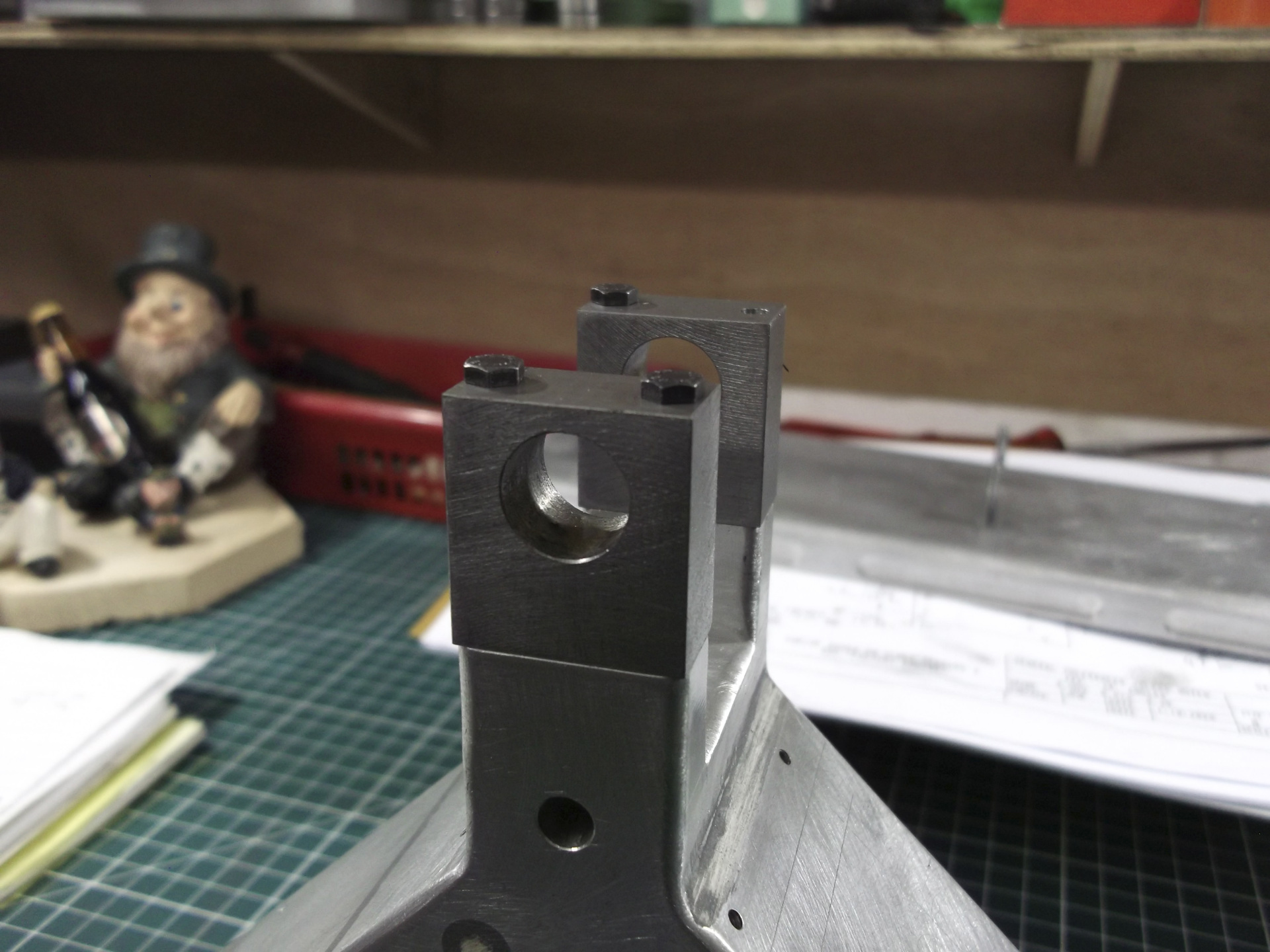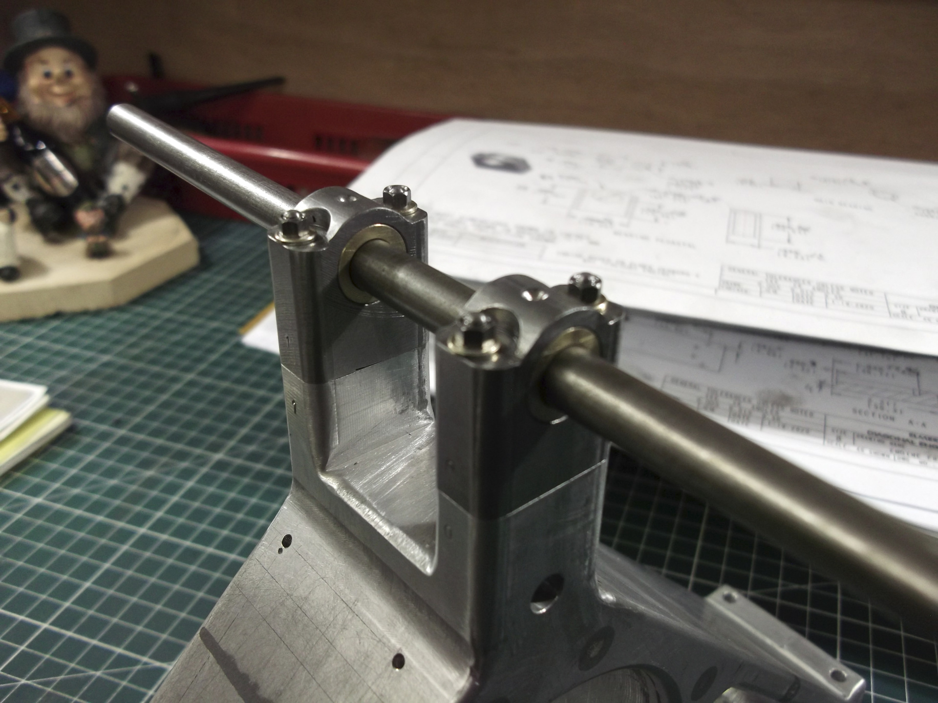 Allez, on continue . Aujourd'hui les flasques sont fini et les axes sont monté gras, ils seront fixé au bloc presse de chez loctite pour le montage final. Voili voilou