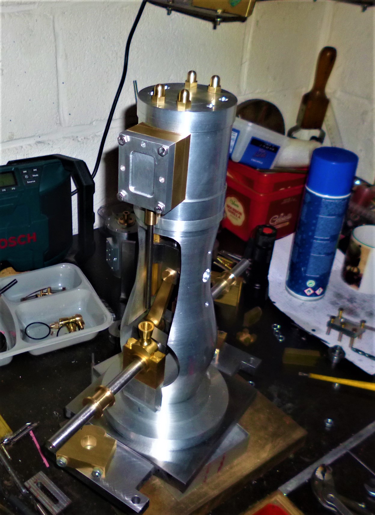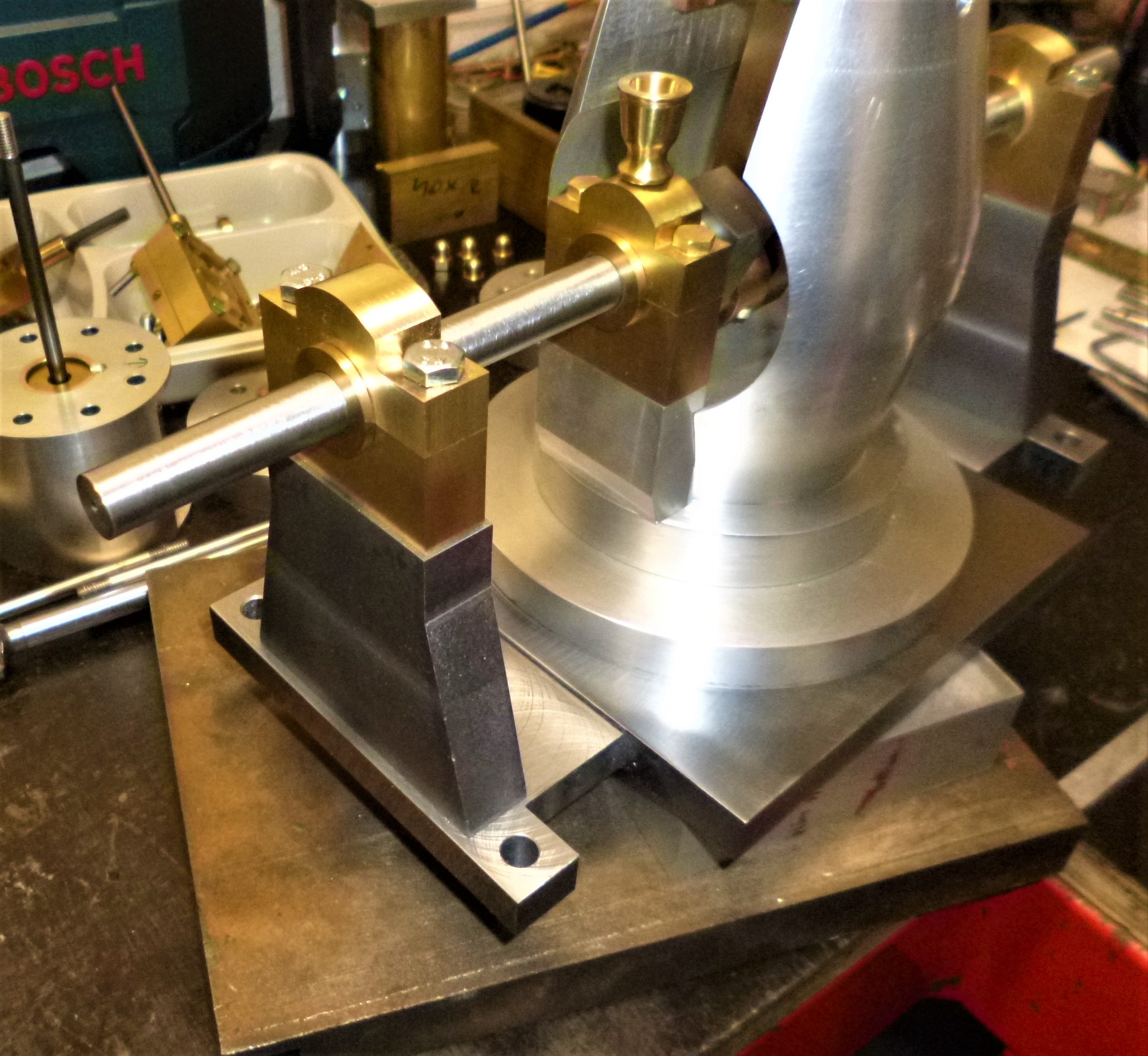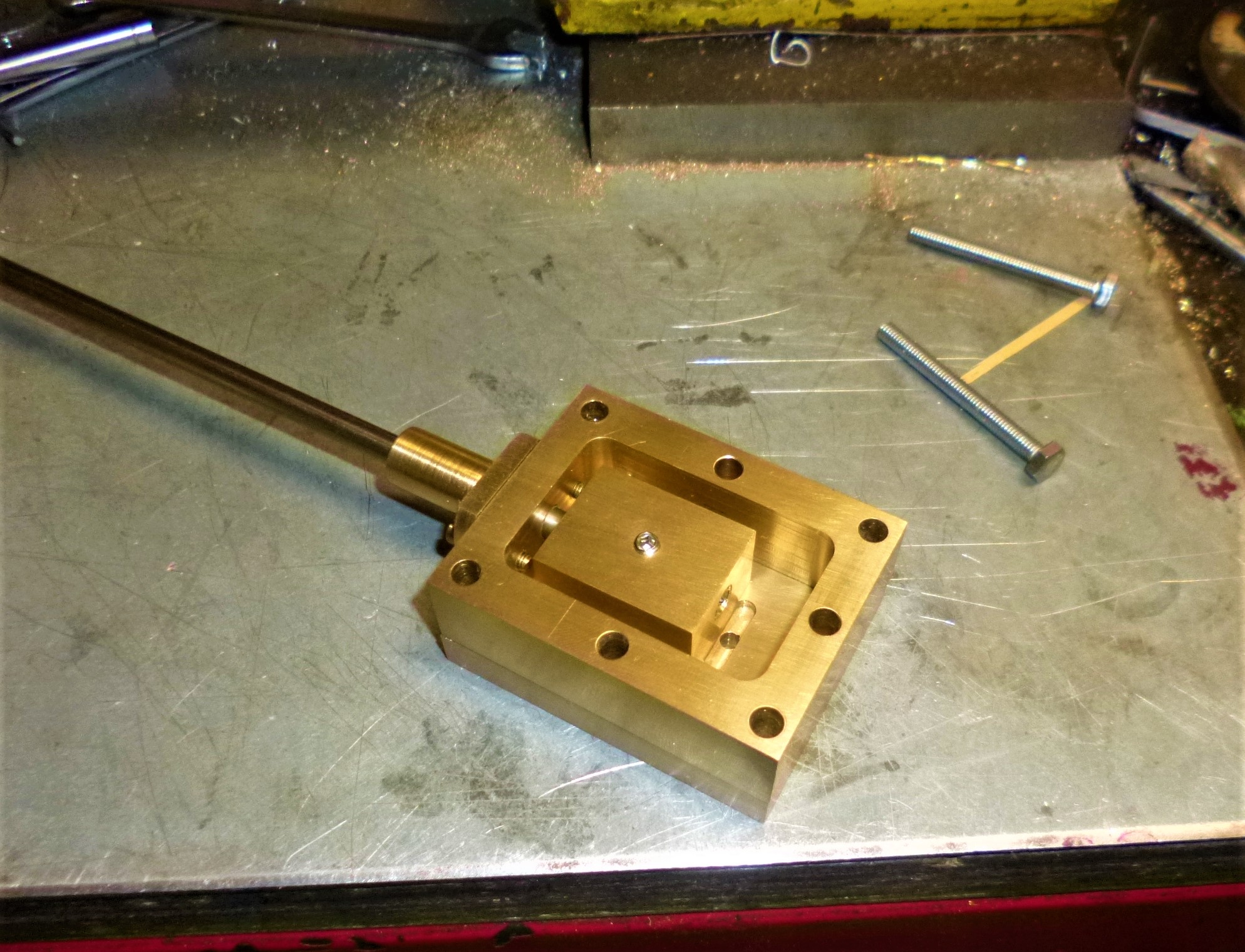 donc voila, le cylindre est fait et mis en place, encore un peu d'ajustage à faire. Le tiroir est fait aussi et la base de la colonne aussi, enfin presque.