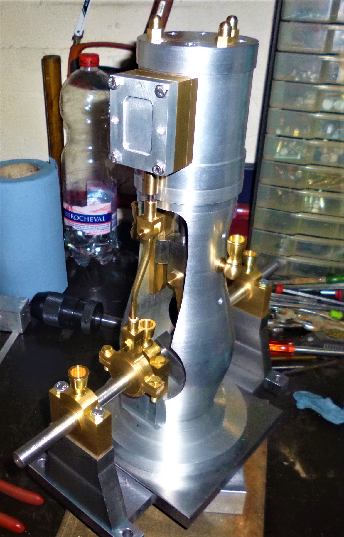 voila j'ai usiné les petites pièces entre l'excentrique et le tiroir, ben sa va j'aime bien, c'est fluide et ça marche bien :)
