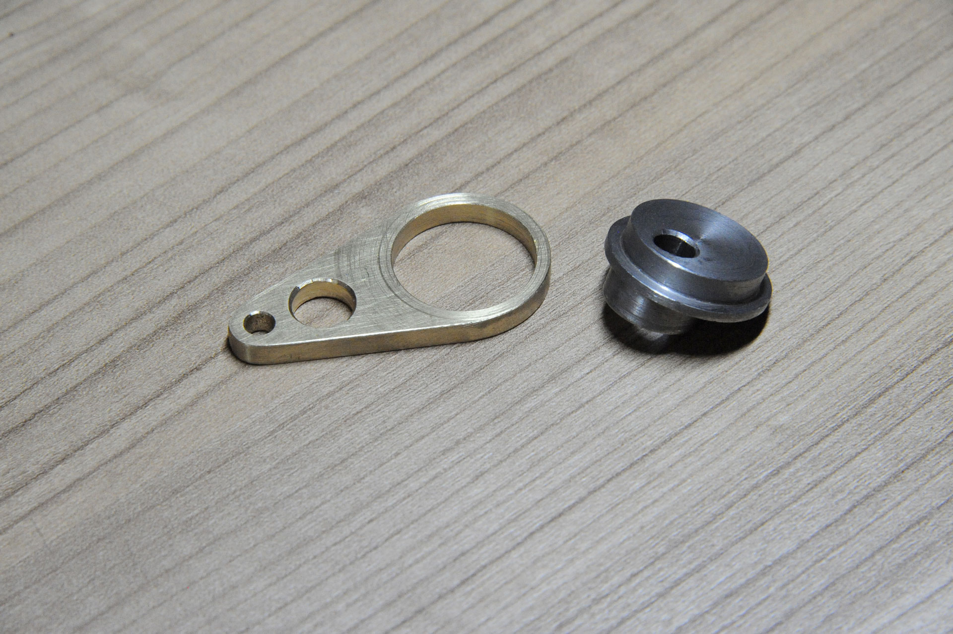 Bonjour tout le monde, un peu de bricole : la bielle de commande pour le tiroir et le bloc cylindre alu chemisé avec un tube laiton de 16x18, la glace et le couvercle supérieur, c'est tout pour le moment