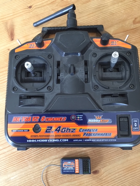 - radio HOBBYKING HK-T6A V2 6 channels 2.4 Ghz et son récepteur HK-TR6A V2. (8 accus dans la radio).