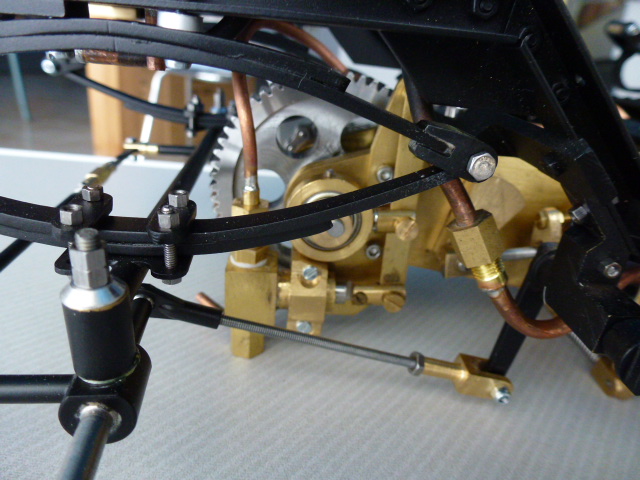 la suite du montage avec installation du manomètre,niveau,train arrière,bâche a eau tank a gaz,mise en pression pour contrôle fuites(juste une petite joint tube niveau)et remplacement pignon plastique :evil: par pignon métal