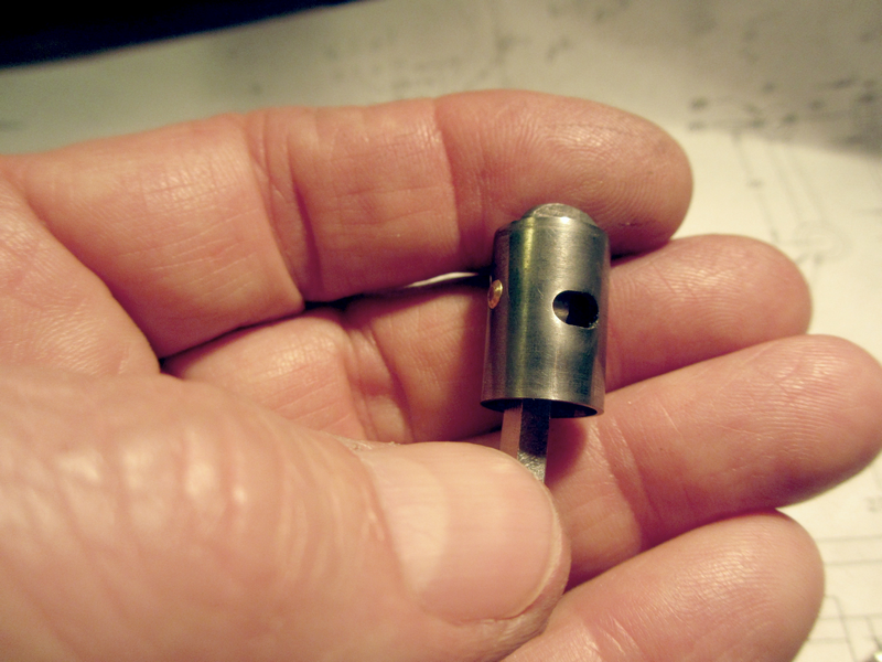 tournage intérieur complet, perçage axe, fraisage lumière, fraisage déflecteur, tout aux dimensions finales, puis le piston est emmanché sur un mandrin alu pour le tournage externe : passes très fine jusqu’à ce qu’il entre très dur en bas du cylindre, et finition papier Norton microfinish : le piston entre plutôt dur dans le cylindre, et rodage à l’huile à la main jusqu’à un bon coulissement.