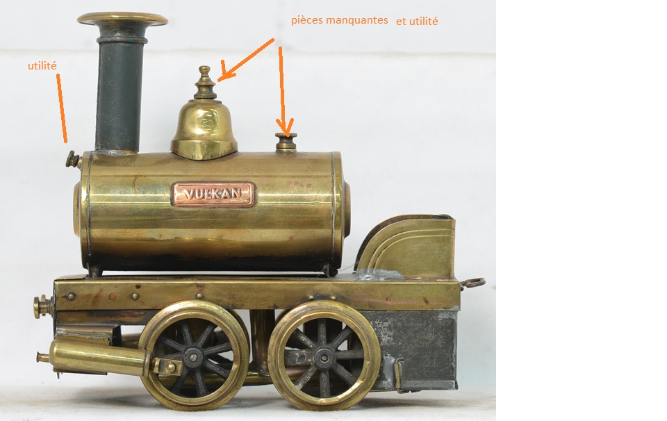 Bonjour et merci de m'accueillir parmi vous. Je suis un retraité, ancien électricien qui bricole beaucoup. Des amis m'ont demandé si je pouvais rénover un vieux train "VULKAN" quatre wagons et la loco dont il manque très peu de choses mais je n'ai jamais touché ce genre de jouet, et je ne voudrais pas faire de bêtise. Je pense qu'il manque le bouchon de remplissage et une soupape. Pensez-vous que je puisse retrouver ce genre de chose, soit en pièces d'occasions, soit en pièces neuves ? Ci-joint une photo trouvée sur le net car ce week-end je ne peux transférer d'image n'ayant pas d'appareil avec moi. Bonne journée à tous. Philippe de Nantes