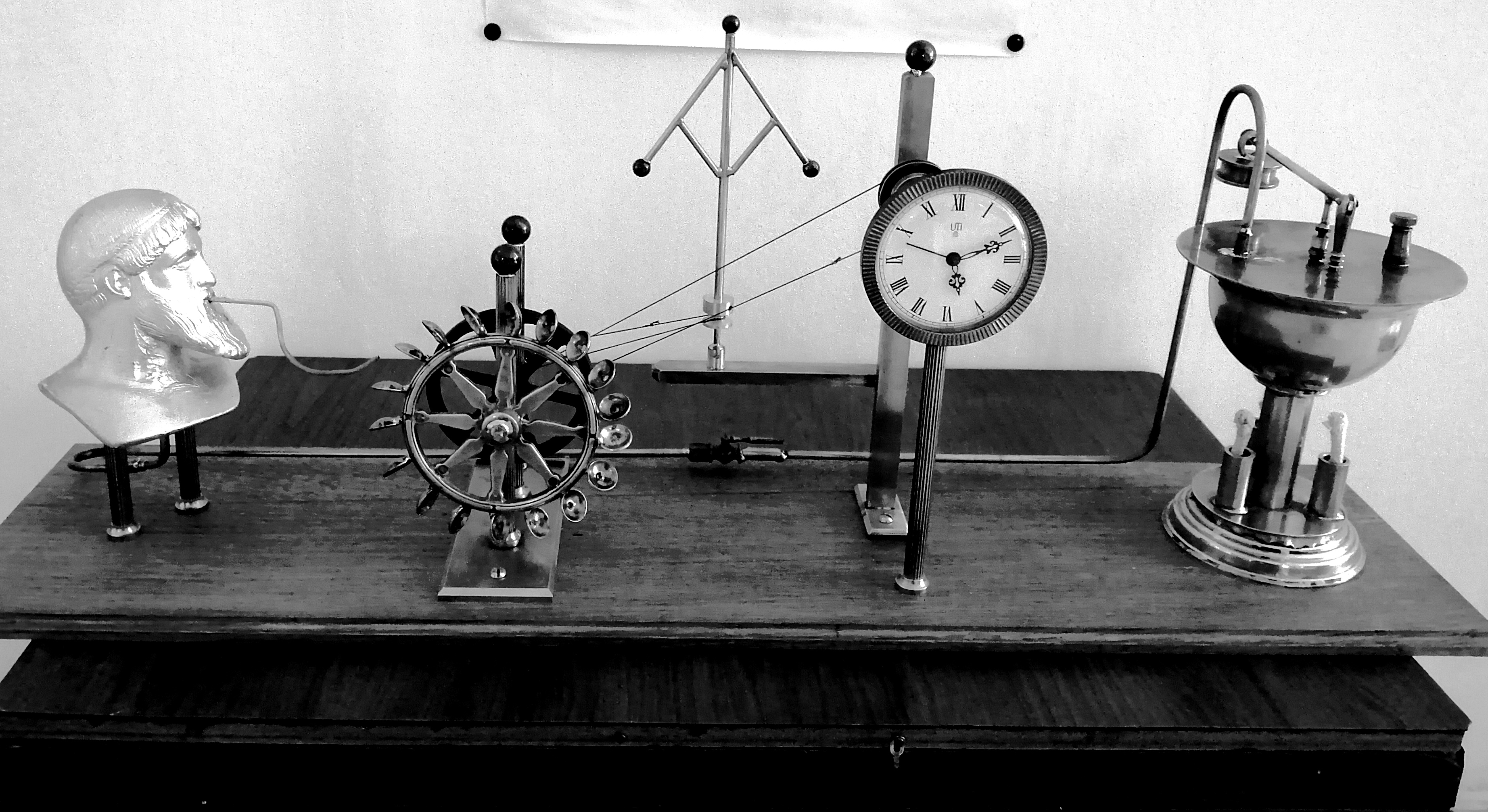 Bonsoir à tous, concernant la photos des 4 machines, il s'agit de 2 EOLIPYLES de ma création dont 1 qui fait tourner les 9 planètes du système solaire, concernant celle à remonter le temps c'est un modèle qui reprend la machine de" Branca "avec un entraînement par mono cylindre oscillant qui fait tourné l'horloge dans le sens inverse des aiguilles d'une montre ainsi qu'un régulateur de vitesse factice entraînement par courroie ainsi que la sortie de vapeur sortant de la bouche du grecque. La 4ème machine est un moteur double cylindre oscillant qui fait tourné un arbre de transmission et une chaîne également pour la rotation du système solaire également, j'espère que mes infos sont clair, si vous désirez d'autre infos n'hésitez pas, Merci 😁😁😁