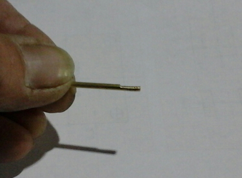 Sur une tige de quelques mm, cette préparation peut se faire en la tenant dans le mandrin d'une perceuse ou visseuse pour la réduire avec une lime. Ce sera mieux centré qu'en limant à la main.