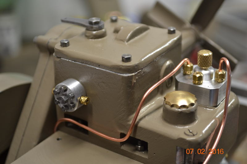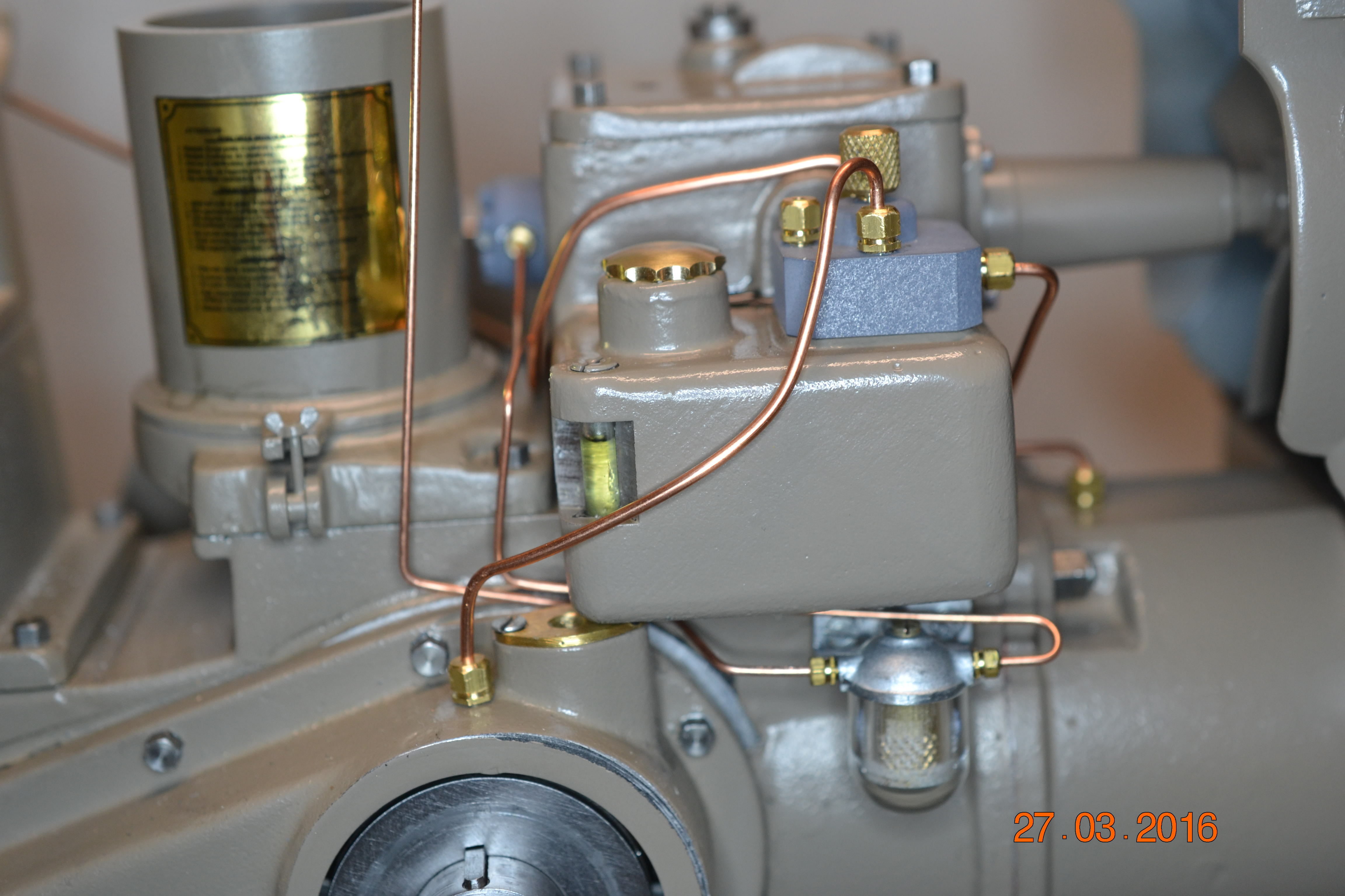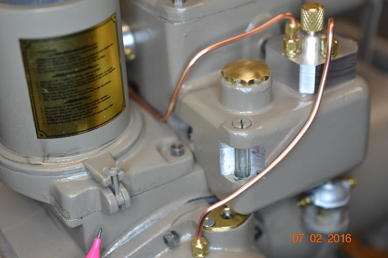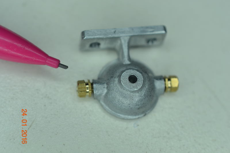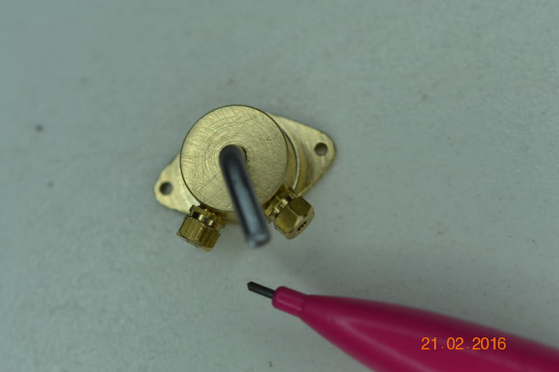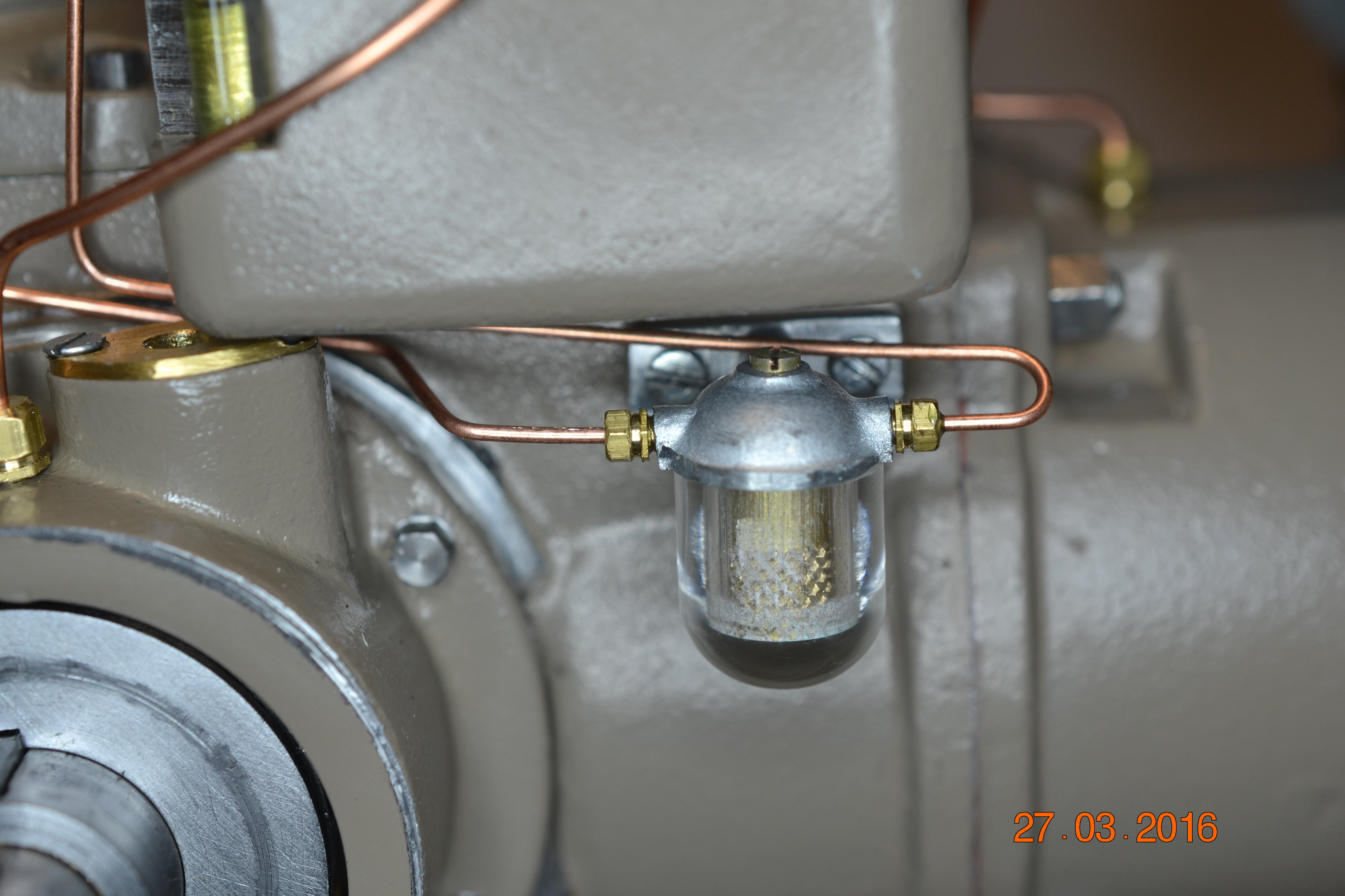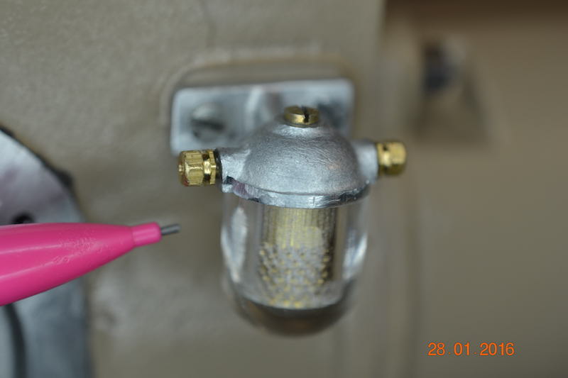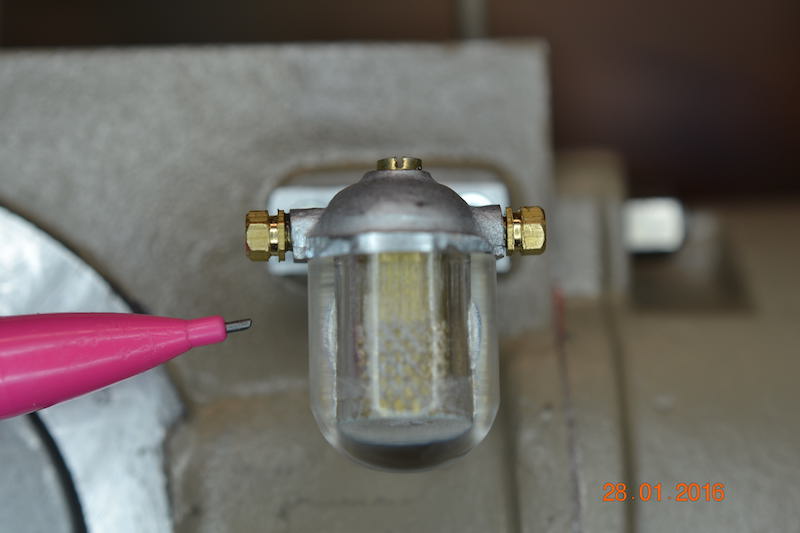 (Ph214 à 216) Le filtre-décanteur à mazout, factice. La partie en plexi est usiné dans un bloc.