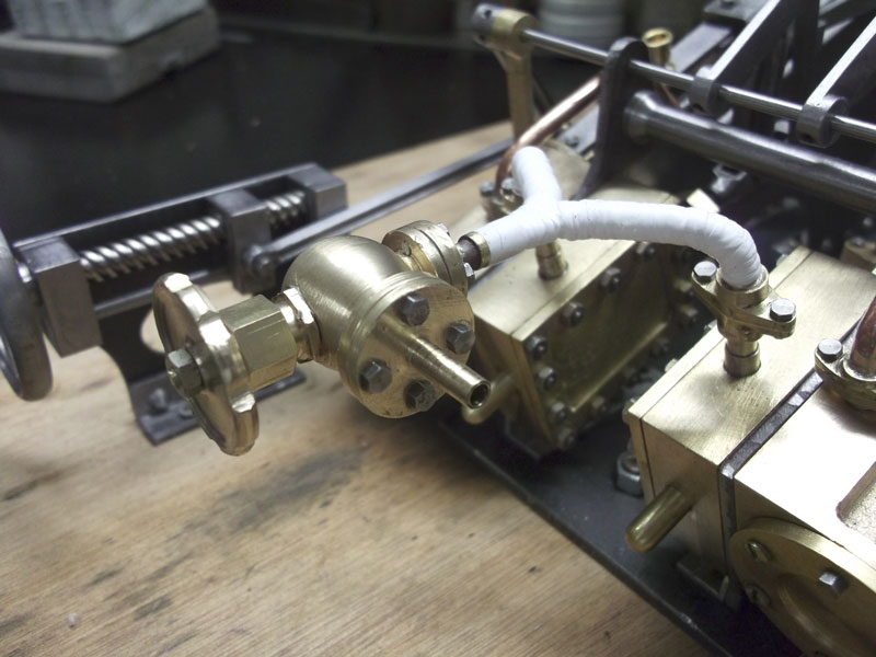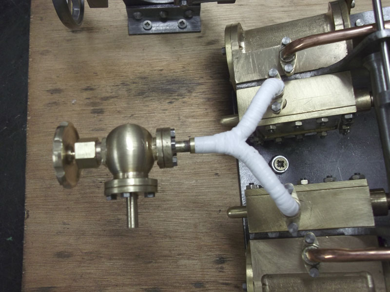 La vanne vapeur et les tuyaux d'échappement sont en place . Maintenant je vais essayer de peaufiner le réglage de la distribution pour avoir un mouvement plus doux . mais ça c'est une autre histoire ;-)