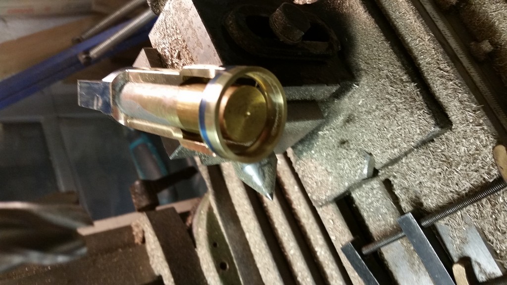 En partant d'un rond de Ø 28 Montage sur fraiseuse avec diviseur et contre point Solution pour usiner l'autre face, soudure a l'étain liquide d'un rond au Ø intérieure. A ce stade il n'y a plus qu'a sortir les limes. Pièce terminée pour l'instant. Prochaine pièce, le bloc cylindre.