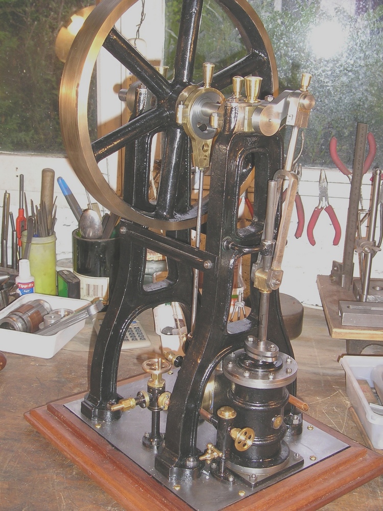 Pour un moteur double effet, il est important que la tige de piston soit bien guidée pour de pas ovaliser le trou de l'axe de piston et le presse étoupe dans le bouchon arrière...un guidage par une ou 2 barres fixées sur le bouchon arr est généralement en place sur les locos, et pour les machines verticales un guide cylindrique est effectivement souvent présent. Il y a aussi le parallélogramme de Watt sur les machine à balancier, un guidage par la tige de piston prolongée au dela de la tête de bielle, qui est en 2 parties pour laisser la place au guide etc,